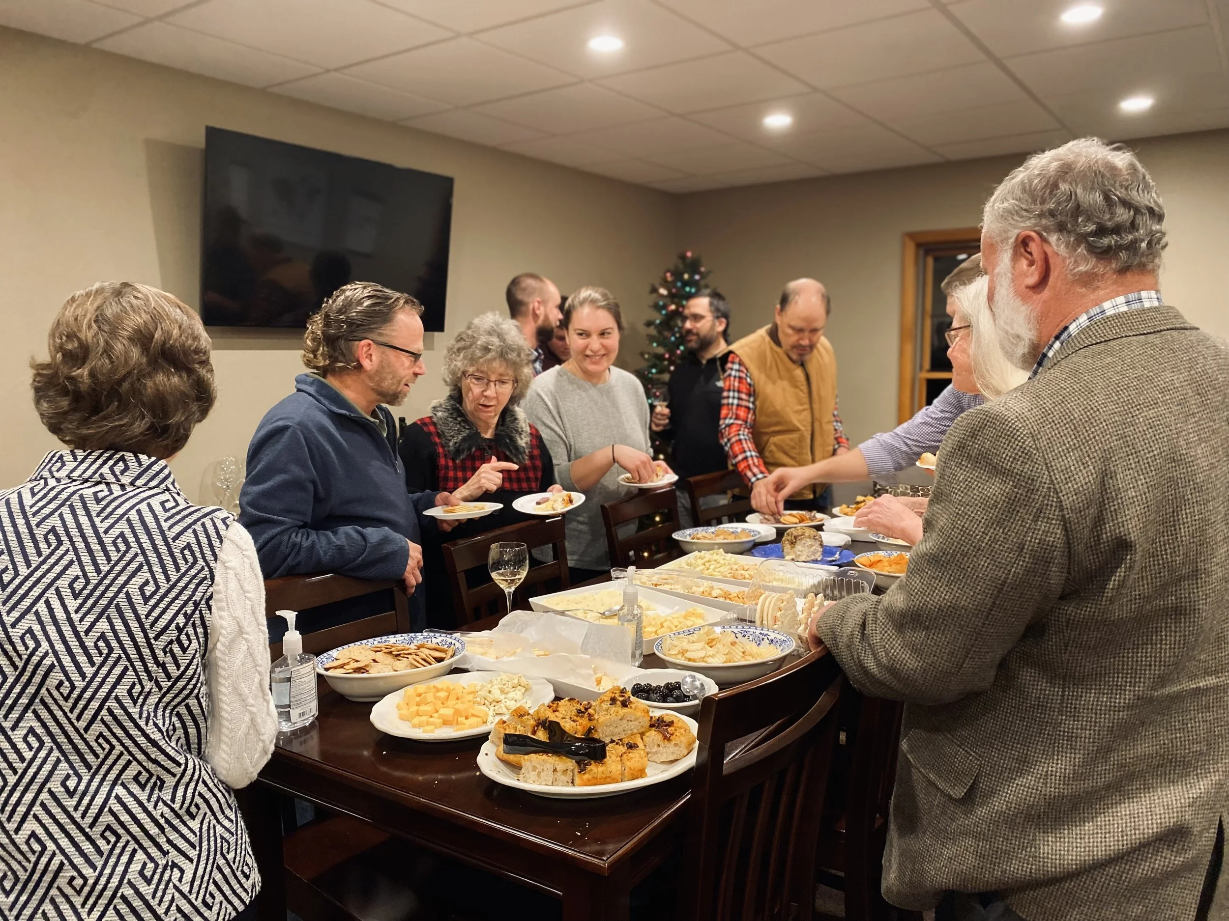 At Trinity, we delight in God’s superabundant goodness shown to us in warm-hearted fellowship, delicious food, and good wine. It is a regular part of our life together to sit at table over locally made cheese, homemade bread, and quality wine while we enjoy talking and laughing with one another, discussing matters of faith and life, and recounting God’s abiding grace and goodness.